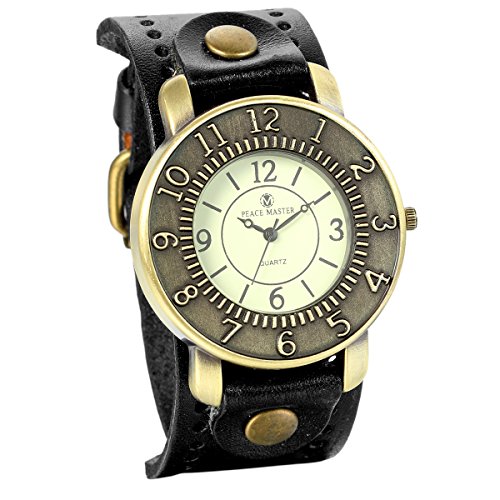 -. Binding : Watch -. Brand : Jewelrywe -. Department : unisex-adult -. EAN : 6954847757846 -. Feature : Including one blue velvet bag P.R.Inted "JewelryWe" on it. / Material: PU Leather + Alloy; 100% Brand New / Band Length * Width: 9.4"(24cm)* 1.2"(3.2cm),Dial Diameter * Thickness: 1.9"(4.9cm) * 0.4"(1.0cm),Weight: 63g / Great gift for women and men. / Retro Punk Rock Big Wide Leather Bracelet Cuff Men Women Watch. -. Label : JewelryWe -. Manufacturer : JewelryWe -. Model : 198795031 -. MPN : JWO090NEW -. PartNumber : JWO090NEW -. ProductGroup : Watch -. ProductTypeName : WATCH -. Publisher : JewelryWe -. Studio : JewelryWe -. Title : JewelryWe Vintage Bronze Round Case Dial Black Leather Wide Belt Wristband Cuff Quartz Analog Wrist Watch