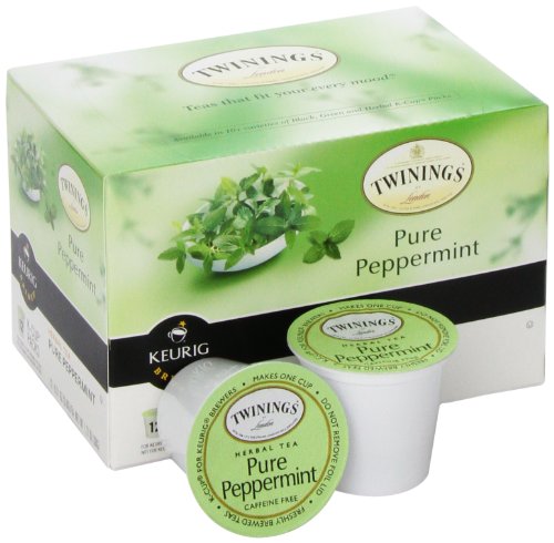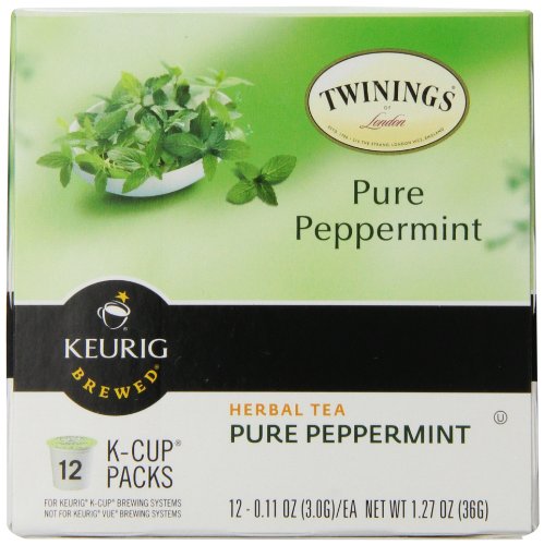 -. Binding : Grocery -. Brand : Twinings -. Feature : In 1706 Thomas Twining started selling fine tea in England / Today, Twining's travels thousands of miles through exotic green tea gardens across many continents to capture the best possible teas and flavors; With expert blending, Twining's creates the richest journey in black, green and herbal teas -. IsAdultProduct : 0 -. Label : Twinings of London -. Manufacturer : Twinings of London -. NumberOfItems : 6 -. PackageQuantity : 6 -. ProductGroup : Grocery -. ProductTypeName : GROCERY -. PublicationDate : 2013-11-25 -. Publisher : Twinings of London -. ReleaseDate : 2013-11-25 -. Studio : Twinings of London -. Title : Twinings of London K-Cup Portion Pack for Keurig K-Cup Brewers Pure Peppermint Tea, 72 Count (Pack of 6)