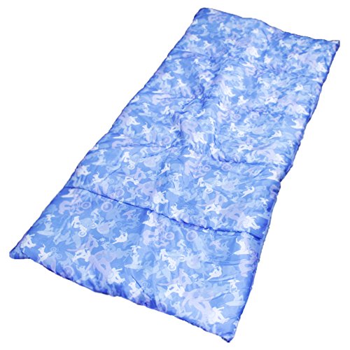 Kids sleeping bag features a polyester outer and liner. For comfort, triloft II performance insulation is used for durability, a full length self-repairing zipper. Age range: 4 and up, weight: 2 lbs. Dimensions: 56 L x 28 w x 3 HFeature