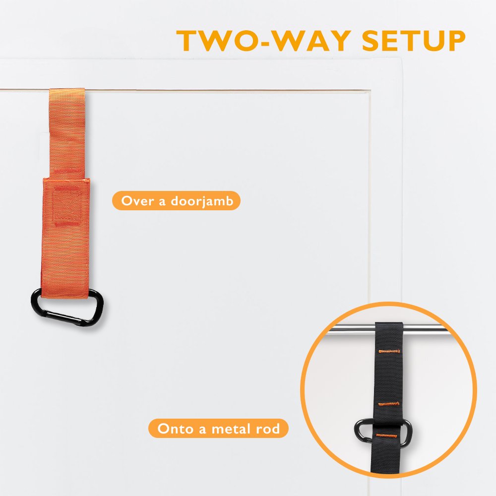 Training can be started immediately if it is assembled in a few seconds with a carabiner and an adjustable strap and anywhere securely hooked, such as a pillar next to the door in the house or at the gym.