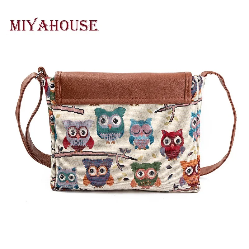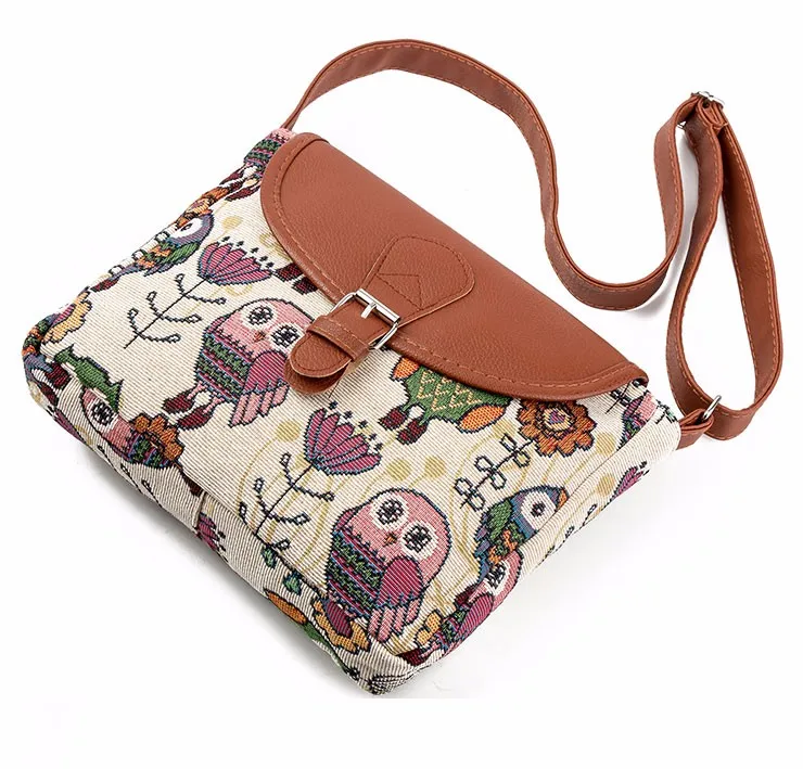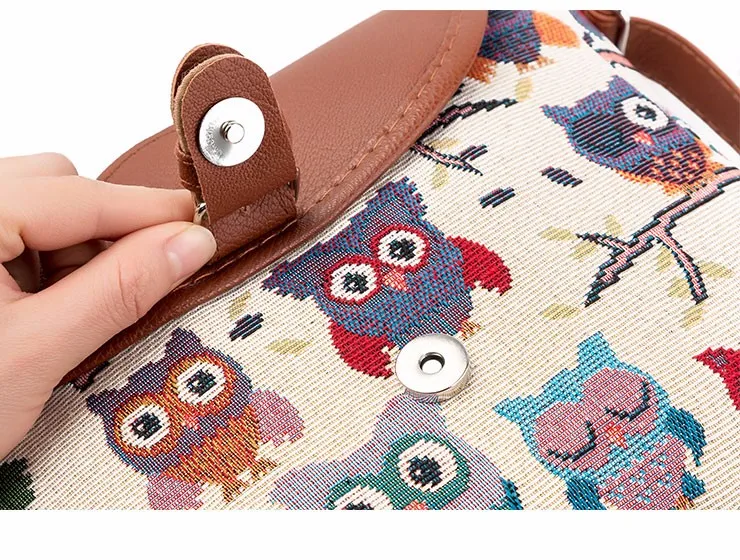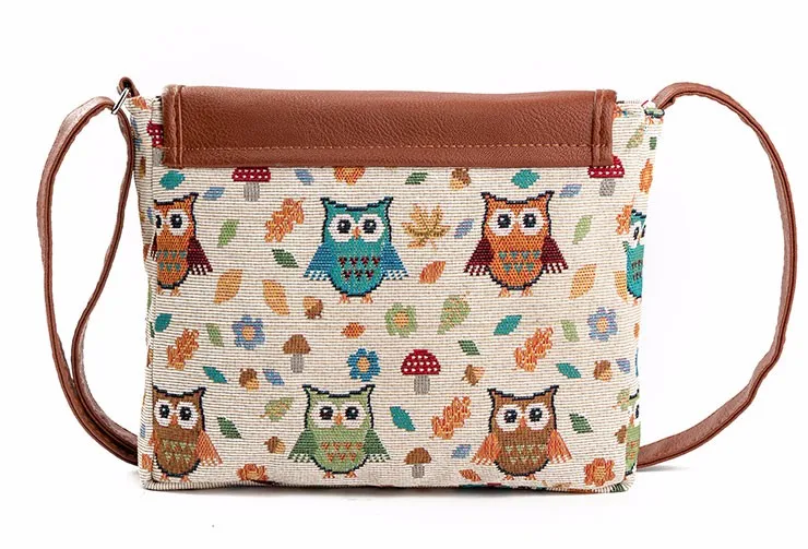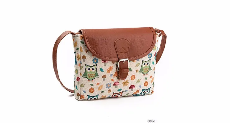 Fashion :Owl Printed Canvas Crossbody Shoulder Bags