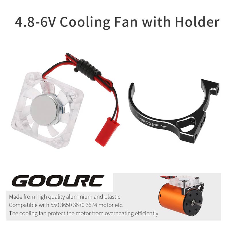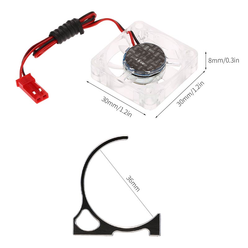 This cooling fan and fan holder is made from high quality aluminium and plastic, which is designed for the RC car with 36mm outer diameter motor. It is practical and durable for protecting the motor from overheating.