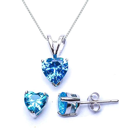 -. Title : Sterling Silver Simulated Blue Topaz Heart Necklace and Earrings Set