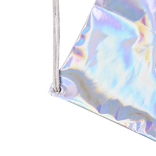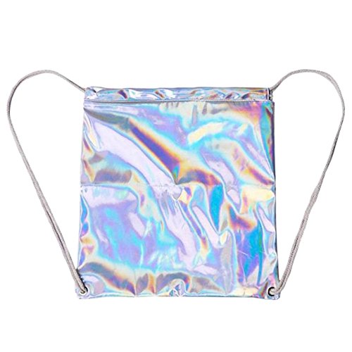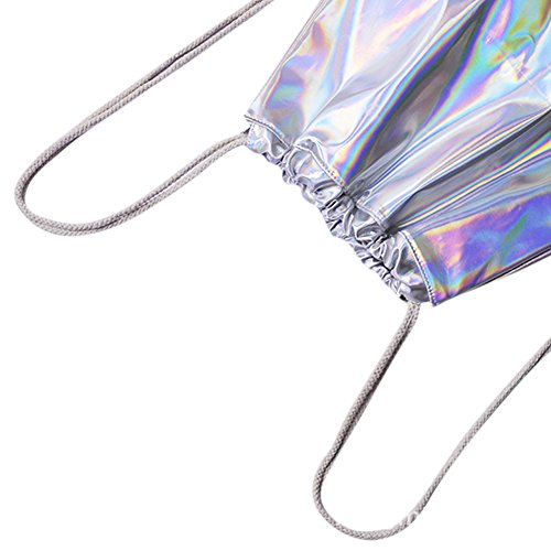 -. Title : Women Fashion Silver Holographic Laser Leather Drawstring Leisure Backpack Travel Casual