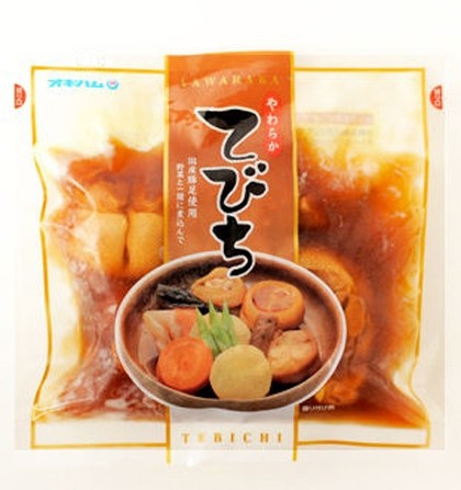 | 原材料 | 名称:豚肉味付 豚足(骨つき)、しょうゆ、砂糖(上白糖、黒砂糖)、みりん、風味原料(鰹エキス、生姜)、泡盛、植物油、酵母エキス、酸化防止剤(ビタミンC)(原材料の一部に小麦、大豆を含む) |
