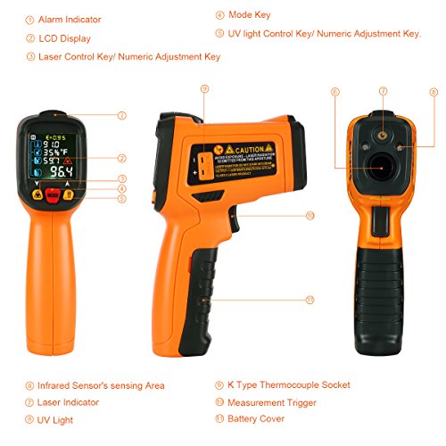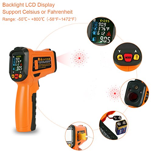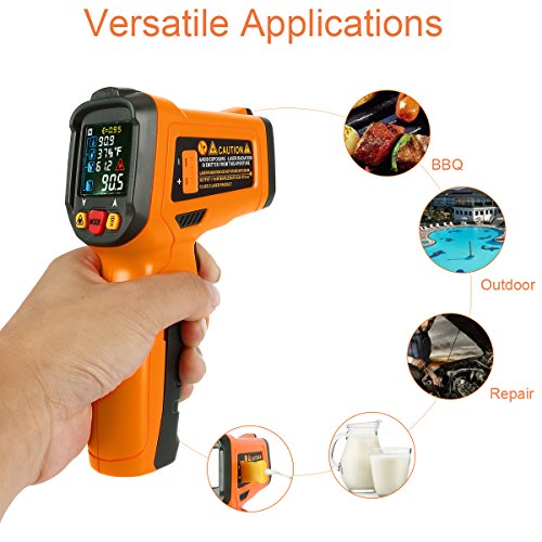 Infrared Thermometer, Digital Laser IR Thermometer Non Contact Temperature Gun -58°F to 1472°F (-50 °C~ 800 °C) with K-Type Thermocouple for Kitchen Cooking BBQ Automotive and Industrial [New Version]