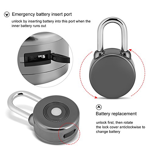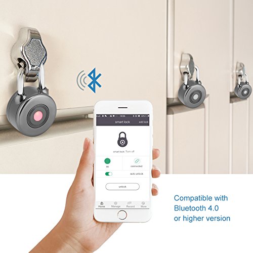 -. Feature : Keyless: With keyless design, you do not have to take the key or remember the password, the IOS or Android smartphone unlocks this smart lock via bluetooth easily / IOS & Android System Compatible: It can be controled by app in your smartphone, iOS and Android system, bluetooth 4.0 or higher version, are all ok. And allows instant and secure sharing and tracking technology, unlock easily, safe and anti-theft / Long Use Life: It is packed with a long-lasting, replaceable, CR2032 battery, desktop computer motherboard also use this battery, it is easier to buy. CR2032 button batteries can withstand -86 degrees Fahrenheit to +158 degrees, compared to rechargeable lithium battery self-discharge is much lower, so you can guarantee standby more than 1 year, unlock 8000 times up. And there are spare battery port for convenient replacement when inner battery runs out / Waterproof: With the high-quality alloy steel body construction, military-grade bluetooth authentication and encryption, this padlock is tamper proof, anti shear and water proof / Application: The compact size and portable design fits most indoor and outdoor lockers, bike motorbike and doors