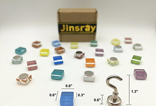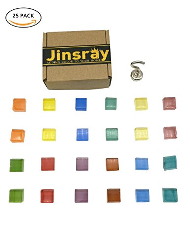 Office Magnets Kitchen Magnets Fridge Refrigerator Magnets for Calendars Whiteboard Maps Magnets, Multicolor Square Glass Colorful Cute Fun Decoration - 24 Pack + 1 Strong Neodymium Magnetic Hook