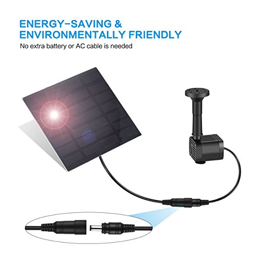 Handy Installation: No additional battery or AC cable needed, this water pump is powered by sunlight directly, and you just put it in water and let it work. With 1.4W high power and brushless DC water pump design, the maximum water-jet height can reach up to 45cm (1.47ft) to offer you a great spray show.