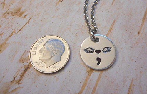 -. Brand : Tucker's Trinkets And Treasures -. Color : Silver -. Department : unisex-adult -. Feature : All items are hand stamped and assembled by me. -. IsAdultProduct : 0 -. ProductGroup : Guild Product -. ProductTypeName : GUILD_JEWELRY -. Title : Heart Semicolon Necklace with Angel Wings, Depression Mental Health Support Awareness Jewelry