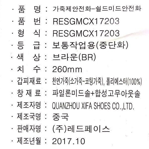 - 산업현장에서 물체의 낙하, 충격 및 날카로운 물체에 의한 부상 위험으로부터 작업자의 발을 보호하기 위한 보통작업용 가죽제 안전화(남녀공용, 미드컷)- 고강도 아라미드 내답판을 사용하여 산업현장의 못 등 날카로운 물체로부터 발바닥을 보호하며 유연성이 탁월하고 가벼워 착용감과 활동성이 뛰어남- 발가락 부분에 강철 토캡을 사용하여 물체의 낙하 및 충격으로부터 발을 보호함- 배색으로 메쉬 소재를 사용하여 쾌적한 착용감을 줌- 탈착이 편리한 지퍼와 스냅을 적용하여 편의성을 더함- 미끄럼 방지가 되는 아웃솔 사용