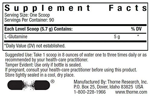 -. Binding : Health and Beauty -. Brand : Thorne Research -. Label : Thorne Research -. Manufacturer : Thorne Research -. ProductGroup : Health and Beauty -. ProductTypeName : HEALTH_PERSONAL_CARE -. Publisher : Thorne Research -. Studio : Thorne Research -. Title : THORNE RESEARCH - L-Glutamine Powder - 12oz [Health and Beauty]