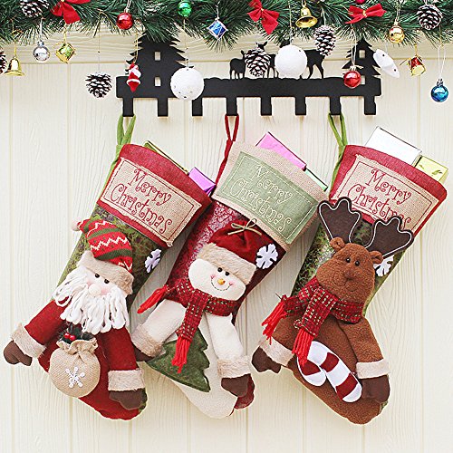 GEANBAYE Christmas Stockings With Large Size And Luxury 3D Elk Santa Claus Or Snowman