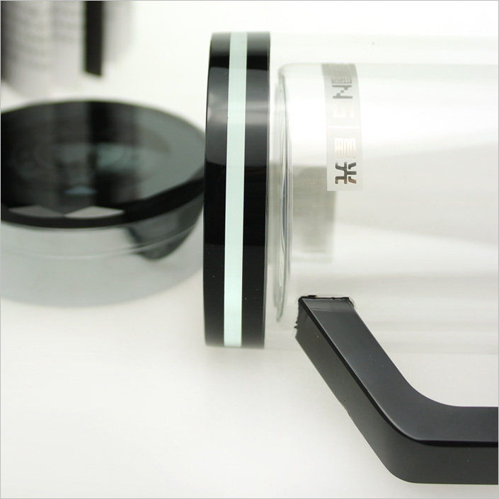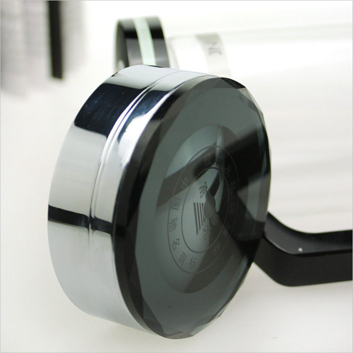 杯盖顶部镶嵌黑色水晶玻璃 并刻意打磨成不同角度 匠心独具