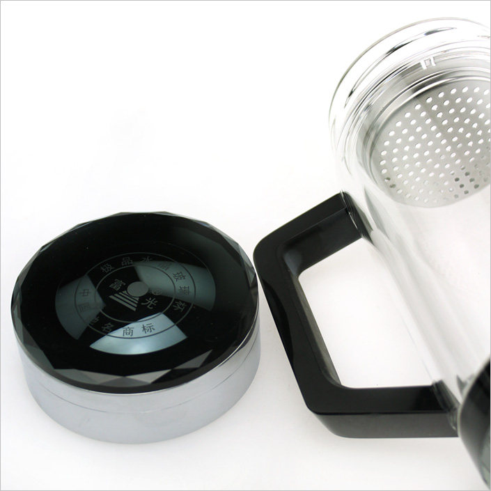 双层杯盖 底部黑色水晶玻璃多棱边打磨成不同角度 如钻石般折射光彩? 304不锈钢滤网 永不生锈