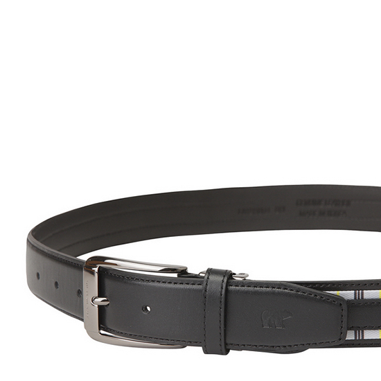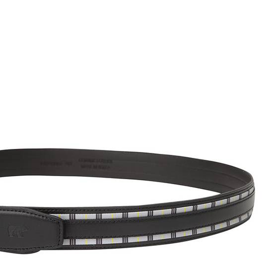 - 사이드 직조 라인 배색으로 세련된 남성 벨트.