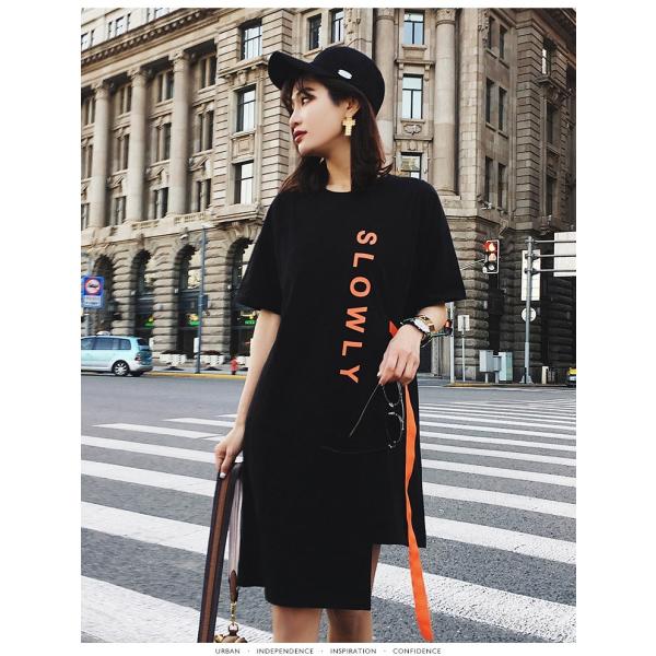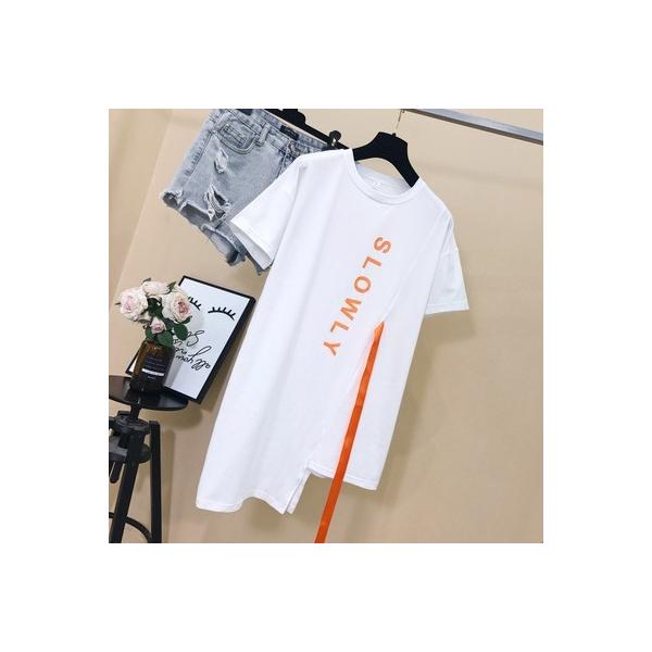 アシンメトリデザインの半袖ロゴTシャツワンピです。