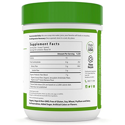 -. Title : Hyperbiotics Organic Prebiotic Powder - Promotes Growth of Good Bacteria while Supporting Healthy Digestion, Weight Loss and Metabolism (with Jerusalem Artichoke and Acacia Fiber) - 375g (54 servings)