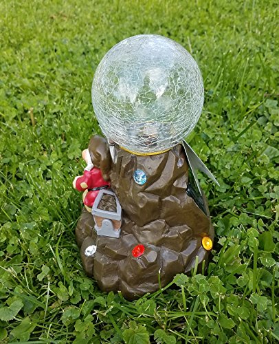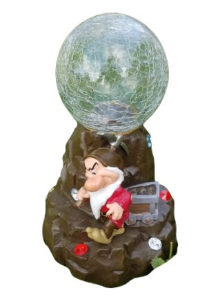 8.5 Inch Snow White and the Seven Dwarfs "Grumpy" Solar Crackle Ball Light Up Garden Statue with Gemstones