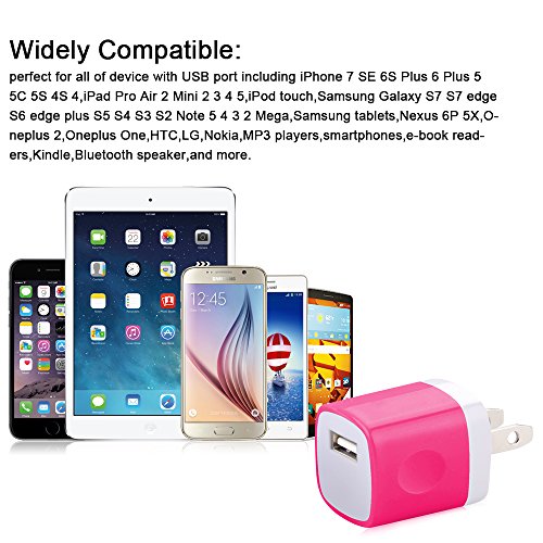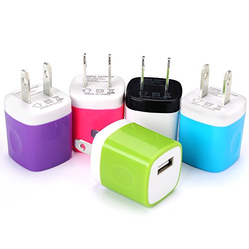 Wall Adapter, [5-Pack] 1AMP Ailkin USB Premium Home Travel Wall Charger Adapter for iPhone 7, 6s, 7 Plus, 6s Plus, Samsung Galaxy S7, S6, LG, HTC, Sony, Motorola, Nokia, Google, PS4 and More