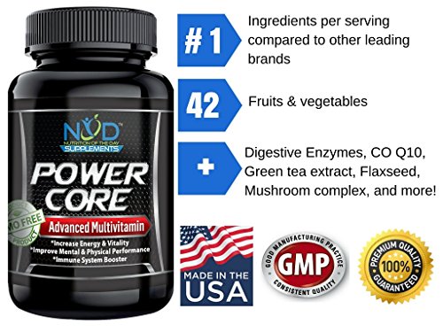 -. Feature : INCREASE ENERGY & IMPROVE PERFORMANCE: #1 Multivitamin with 25 Key Vitamins and minerals to give your body the nutrition it craves for peak performance. The best multivitamin to improve energy, vitality and performance. / IMPROVE OVERALL HEALTH & BOOST IMMUNE SYSTEM: Best Multivitamin with the correct levels of Vitamins, Minerals, 42 Fruits & Vegetables and Digestive Enzymes. / POWERFUL ANTIOXIDANTS: Power packed multivitamin with antioxidants from 42 fruits & vegetables, energy producing B-Vitamins and C-Vitamins, and our unique proP.R.Ietary blend make Power Core the best multivitamin available to improve overall health. / 100% Natural & MADE IN THE USA: Daily Multivitamin that is Natural, Non-GMO ingredients and certified in GMP to ensure a quality multivitamin. / MONEY BACK GUARANTEE: Each order of Power Core Multivitamin comes backed by a 30-day money back guarantee. We want you to trust that we've created one of the best multivitamins available- purchase with peace of mind.