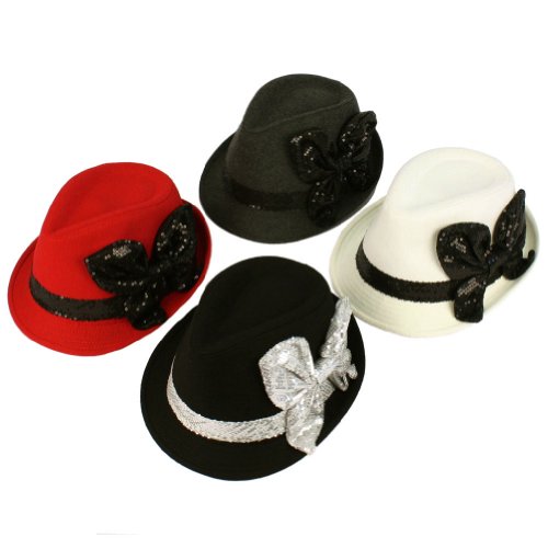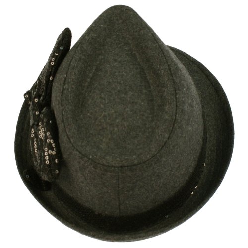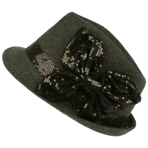 -. Title : Ladies Winter Classic Wool Blend Fedora Trilby Sequins Bow Dancer Cap Hat Gray