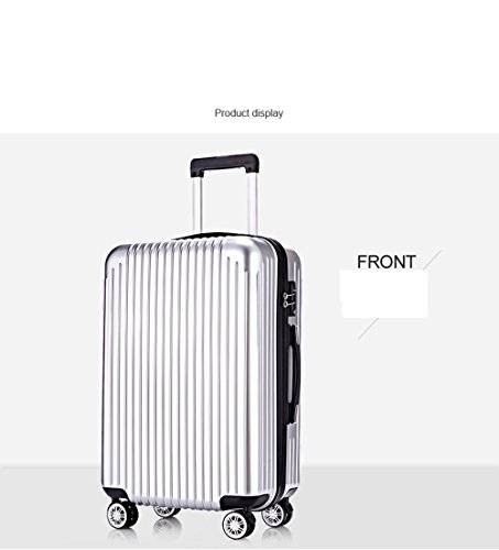 Product Description Specifications Material: High Quality f ABS with PC Material of Lining: 210D Polyester Material of handle: Metal Color :Grey ,Green , Pink Weight: 5.9lbs Volume:55L DIMENSIONS:22"L x 14"W x 9"H Main features Mirror trolley case appearance :the fashion design, and this is fashion trends style. Convenient boarding:when you take plane ,you can use it for business , travel. Compound soft Rubber handle: Design of elastic design, top side double handle Package: 1×20" trolley case