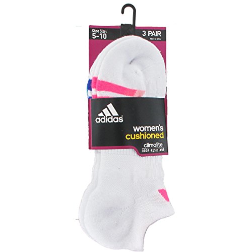 adidas Women's Cushioned 3pk No Show Sock White/solar Pink/Night Flash Purple/Vivid Mint Green