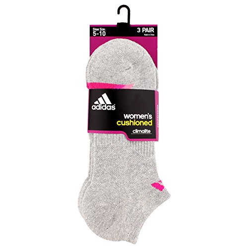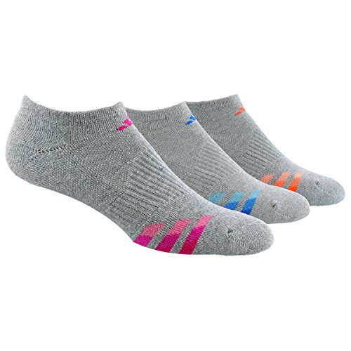 adidas Women's Cushioned No Show Sock (3 Pack), One Size, Heather Light Onix/Bold Pink/Shock Blue/Intense Orange