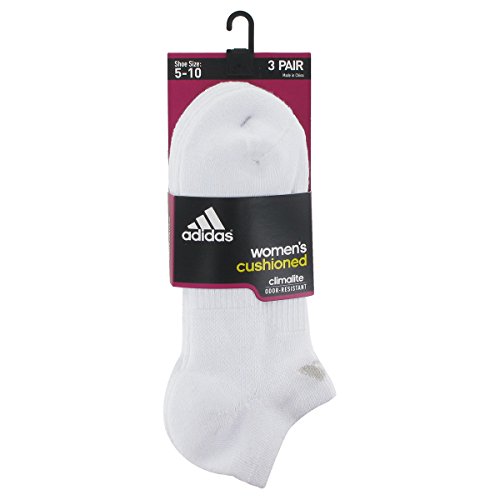 adidas Women's Cushioned No Show Socks (Pack of 3), White/White, One Size
