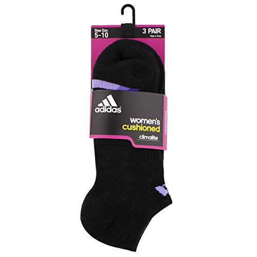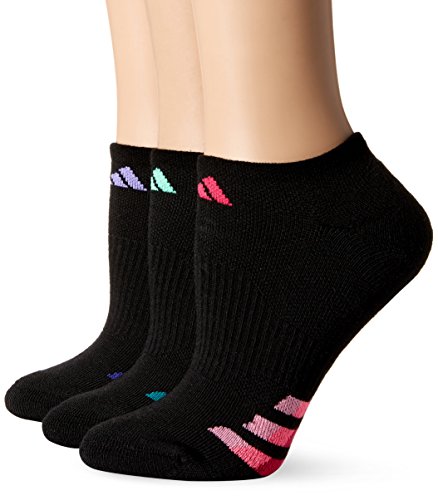 adidas Women's Cushioned No Show Sock (3 Pack), One Size, Black/Light Flash Purple/Green Glow/Bold Pink