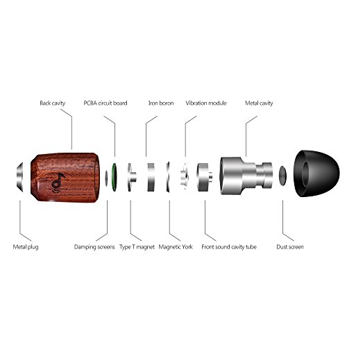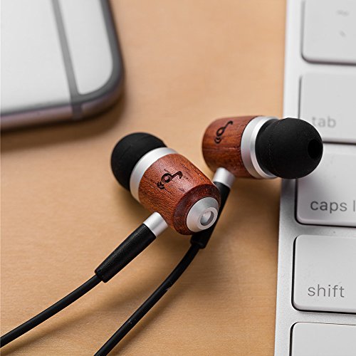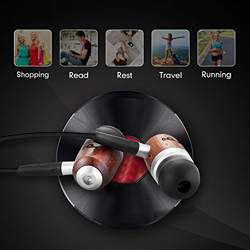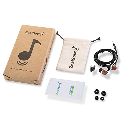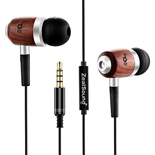 Wood Earphones Headphones, ZealSound In-ear Bass Noise-isolating Earbuds with Microphone, Carrying Pouch and Cord Clip, HDE-300 2017 New Version (One Year Warranty)
