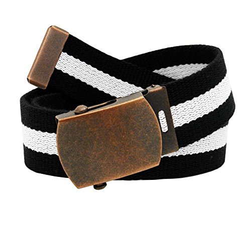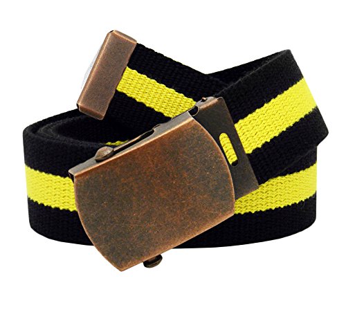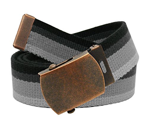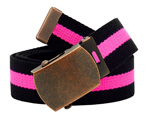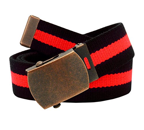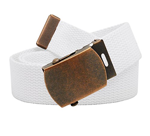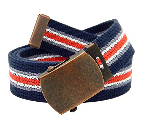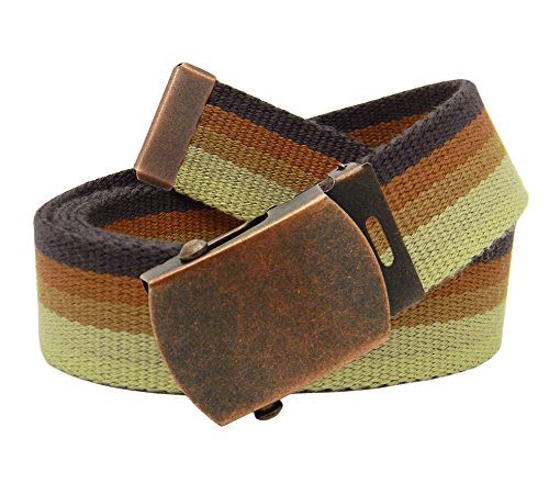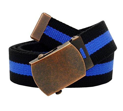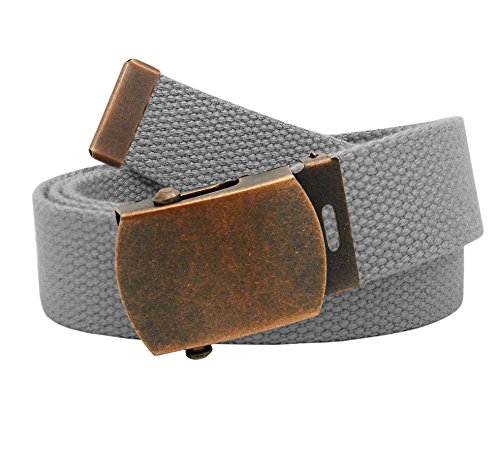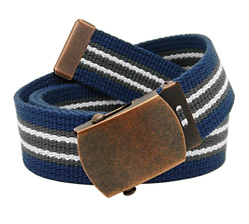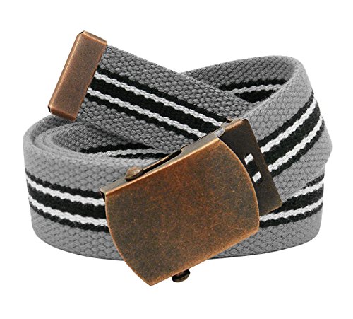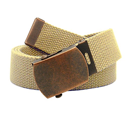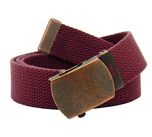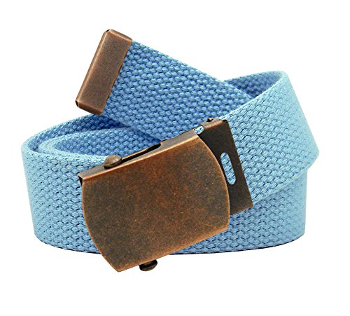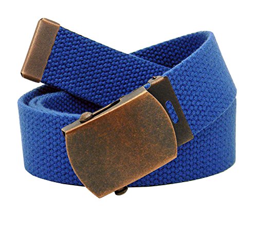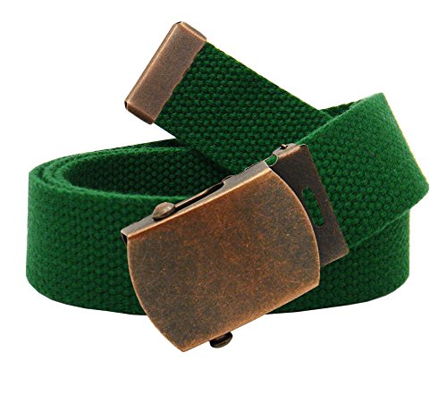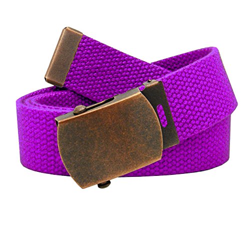 Build A Belt School Uniform classic slider military style buckles with canvas web belts are available in a variety of colors and sizes for kids of all ages. This is a classic Antique Copper finished slider 1.25" military buckle that is easy for kids to use. All buckles and canvas belts are 1.25 inches wide, and the web belts fit through most belt loop sizes. Belt webbing is made of a high quality acrylic that is color fast and does not fray.