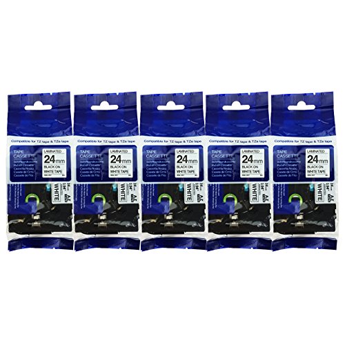 -. Title : 5 Pack of TZe251 Compatible Tape for BROTHER P-Touch 1" (24mm x 8m) Black on White by OFFICE LABELS