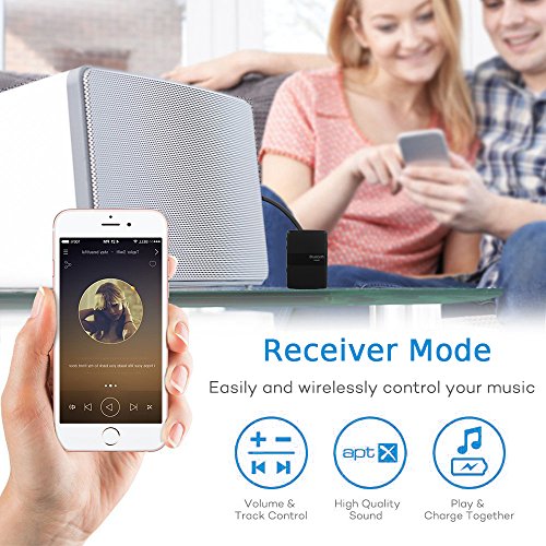 PURE SOUND: aptX audio codec for a richer and deeper sound experience. Listen to CD-like audio quality at no compromise. Support volumn down/up, previous/next when acts as a bluetooth receiver. 12 month warranty, 24/7 friendly customer service & 30-DAY money back guarantee.
