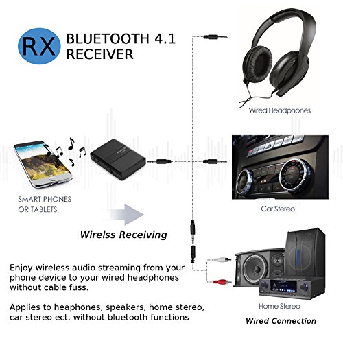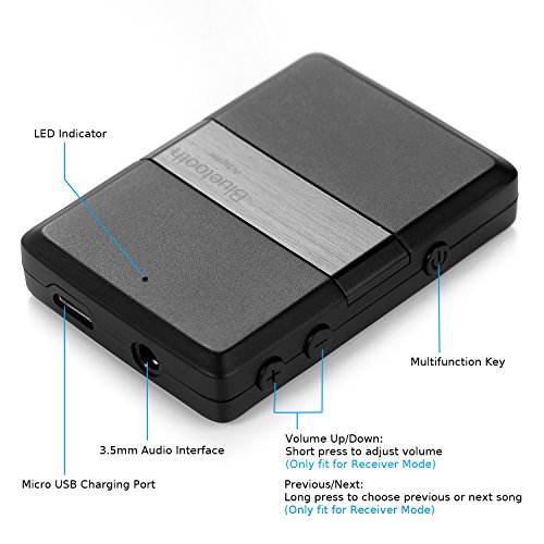 BLUETOOTH EVERYWHERE: In Transmitter mode (TX), turn a non-Bluetooth TV, PC, CD player, iPod, MP3 / MP4 into a Bluetooth transmitter while pairing with Bluetooth stereo. Receiver mode (RX): Ideal for home or vehicle music streaming sound system.