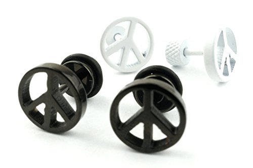 -. Title : [ATK21] 両耳用(2個セット) ピースマーク スタッド ピアス メンズ レディース ステンレス ブラック ホワイト アクセサリー