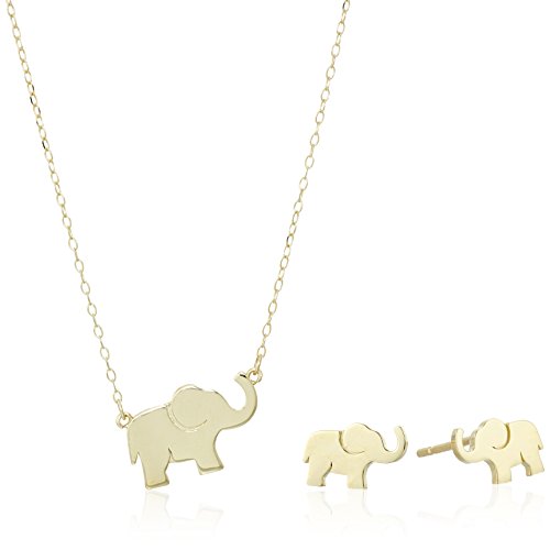-. Feature : 10k Yellow Gold Elephant Station Necklace and Post Earring Set / Earring: 0.4" X0.2"