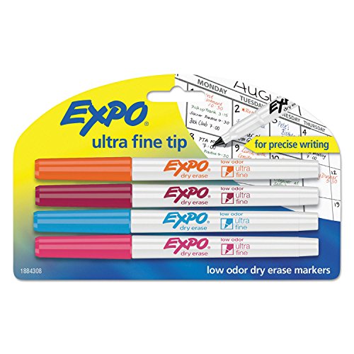 EXPO Low-Odor Dry-Erase Marker, Ultra Fine Point, Assorted, 4 per Set