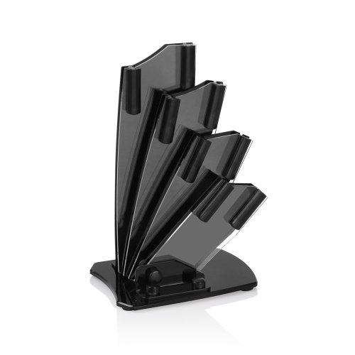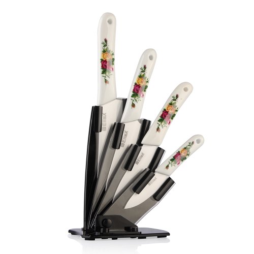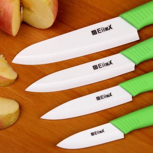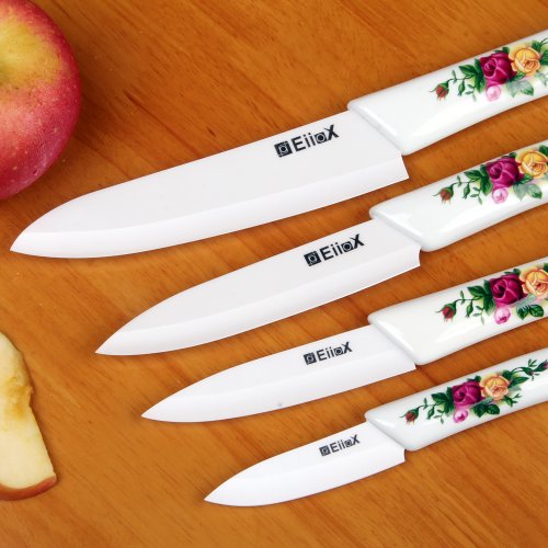 EiioX 4-Piece Kitchen Ceramic Knife Set (6" Chef's, 5'' Slicing, 4'' Utility, 3'' Paring) White Blade and Knife Block