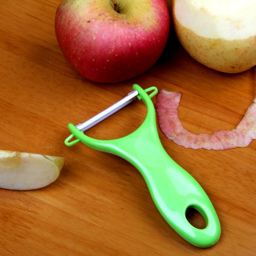 EiioX 5-Piece Kitchen Ceramic Knife Set(6" Chef's, 5'' Slicing, 4'' Utility, 3'' Paring and 1 Peeler) White Blade Green Handle and Knife Block