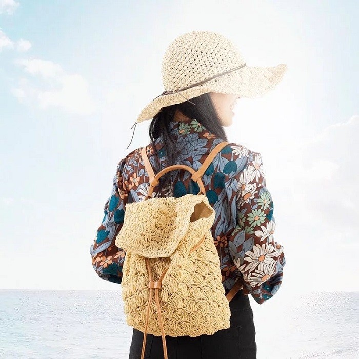 爽やかな草編みの質感でとても夏の季節感が溢れる