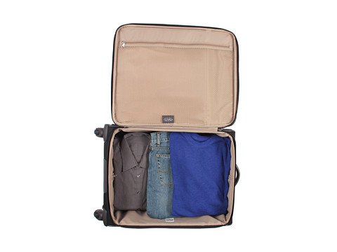 -. Feature : Fully lined interior / Exterior zippered pocket perfect for magazines and boarding passes / 180 degree spinner wheels / Top carrying handle / Telescoping retractable handle