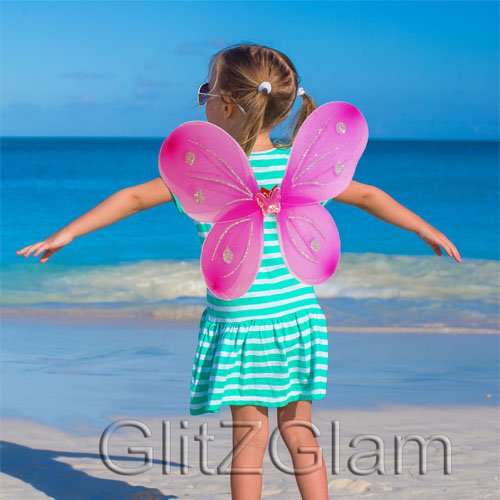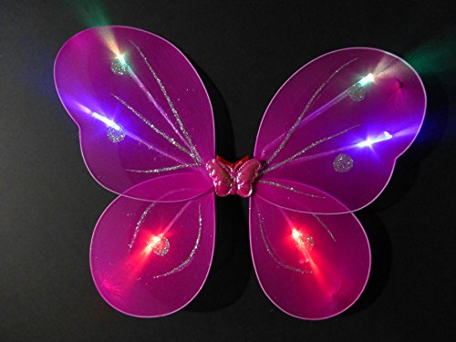Butterfly wings is the perfect costume accessory to many of your favorite girl costumes. Ideal for girls who wants to become a beautiful fairy, butterfly or Tinkerbell. To activate your glow in the dark fairy wings, press the button on the battery pack. Multicolor LED lights flash continuously. The lightweight, compact size wings are a sheer fuchsia material with glittery designs. Light Up / glow in the dark butterfly wing costume for girls is the ultimate costume accessory! Affordable, adorable & matches everything. Add LED Light Up wings to any outfit and *voila* you are a pretty fairy princess or a fabulous butterfly! Light Up Fuchsia Fairy Wings also make great party favorites for little birthday girls with big imaginations. Match it for your Halloween costume, Tinkerbell costume or simply as a beautiful butterfly. Tags: girl costume, costumes for girls, butterfly wings, fairy costumes, butterfly wing, costume accessories, tinkerbell costume, costume wings, fairy wings, costumes for kids, girls' costumes, cheap costumes, costumes and accessories, costumes accessories, butterfly costumeFeature
