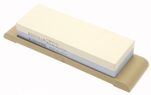 Kotobuki Suehiro Japanese Sharpening Stone, Dual-sided #1000 and #3000 Grit with Rubber Base, Medium, Natural