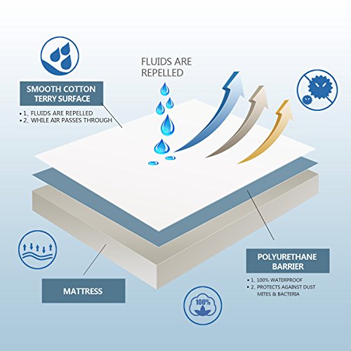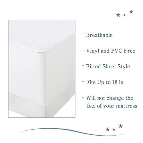 -. Title : Premium Hypoallergenic Waterproof Cotton Terry Mattress Protector – Breathable,Noiseless,Vinyl Free Protector Cover Up to 18" deep pocket)