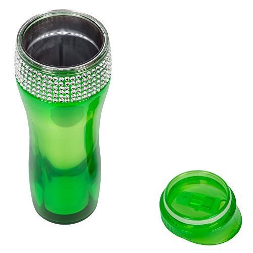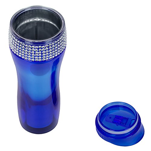 -. Brand : New Dimensions -. Feature : Made of Hard Plastic / Bling Rhinestone Accents / Holds 14 Oz. / Easy Sip lid - slides to open and close. / Double Walled -. Label : New Dimensions -. Manufacturer : New Dimensions -. Model : BLIB -. MPN : BLIB -. PartNumber : BLIB -. ProductGroup : Kitchen -. ProductTypeName : KITCHEN -. Publisher : New Dimensions -. Studio : New Dimensions -. Title : Bling Rhinestone Double Walled 14 Oz. Travel Mug