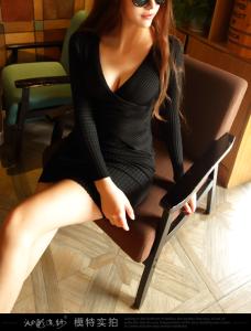 リブニットワンピース 長袖 タイトワンピース ミニワンピース マイクロミニ Vネック リブ