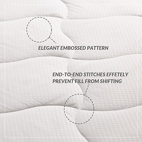 -. Title : Mattress Pad Full Hypoallergenic Embossed Overfilled Vinyl Free Plush Breathable Dust Mite Resistant by Bedsure