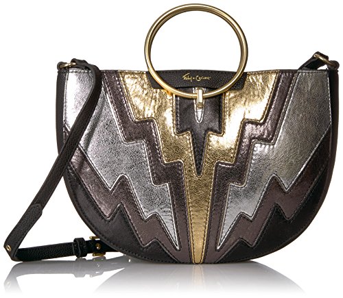 Product DescriptionThis Foley Corinna medium sized crescent shaped crossbody is crafted with faux leather and features a zig zag metallic design on the front.0